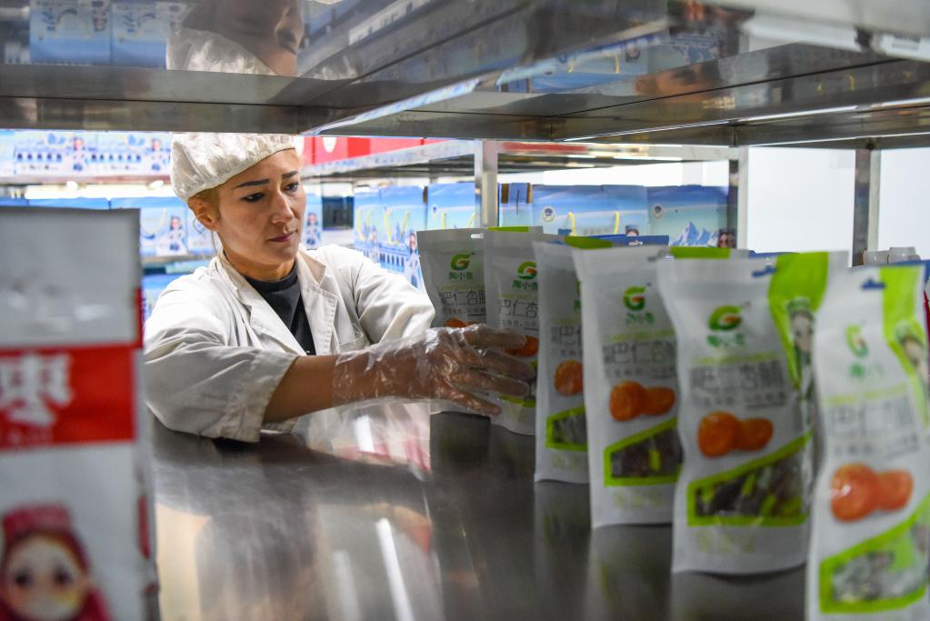 在阿克陶县国投公司的食品加工车间,杏脯包装线员工正加班加点生产。“这几天杏花节,仓库存货都搬到现场销售一空,供不应求。”公司董事长王明华说,今年将扩大产能,增加品类,让“土特产”创造“金效益”。(记者关俏俏、苟立锋)