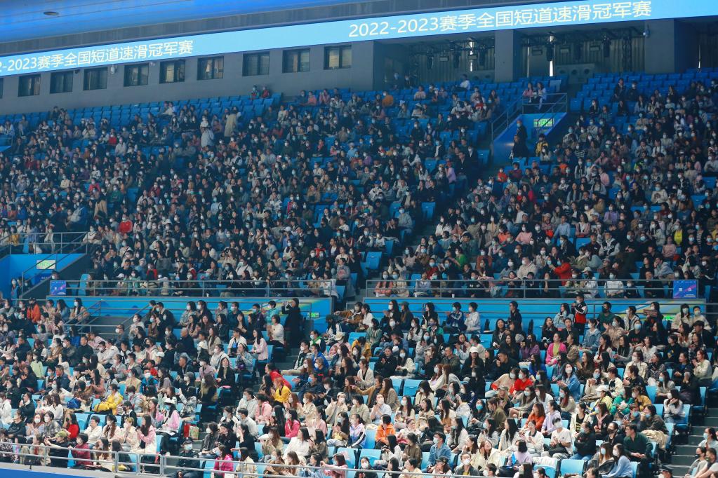 4月1日,在首都体育馆观众座席,大量观众前来观赛。