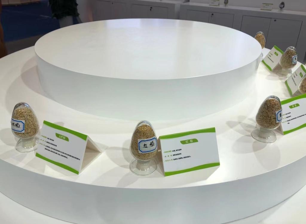 2023中国种子大会展出各色稻种。新华社记者陈凯姿 摄