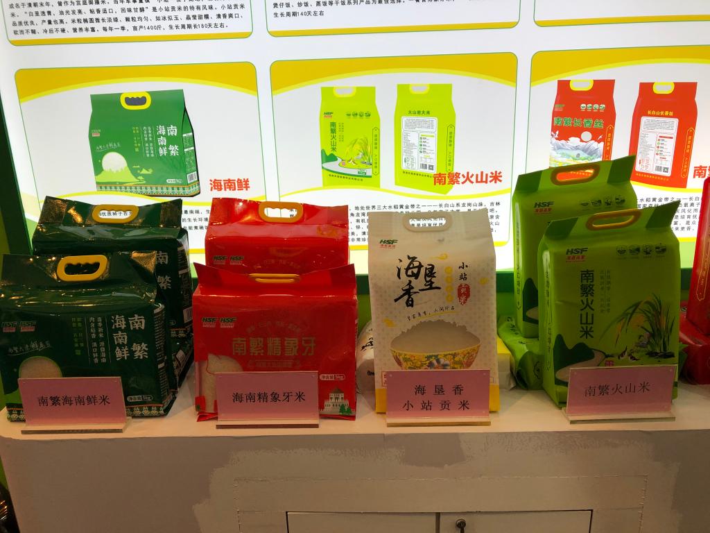 2023中国种子大会期间稻米商品亮相展区。新华社记者陈凯姿 摄