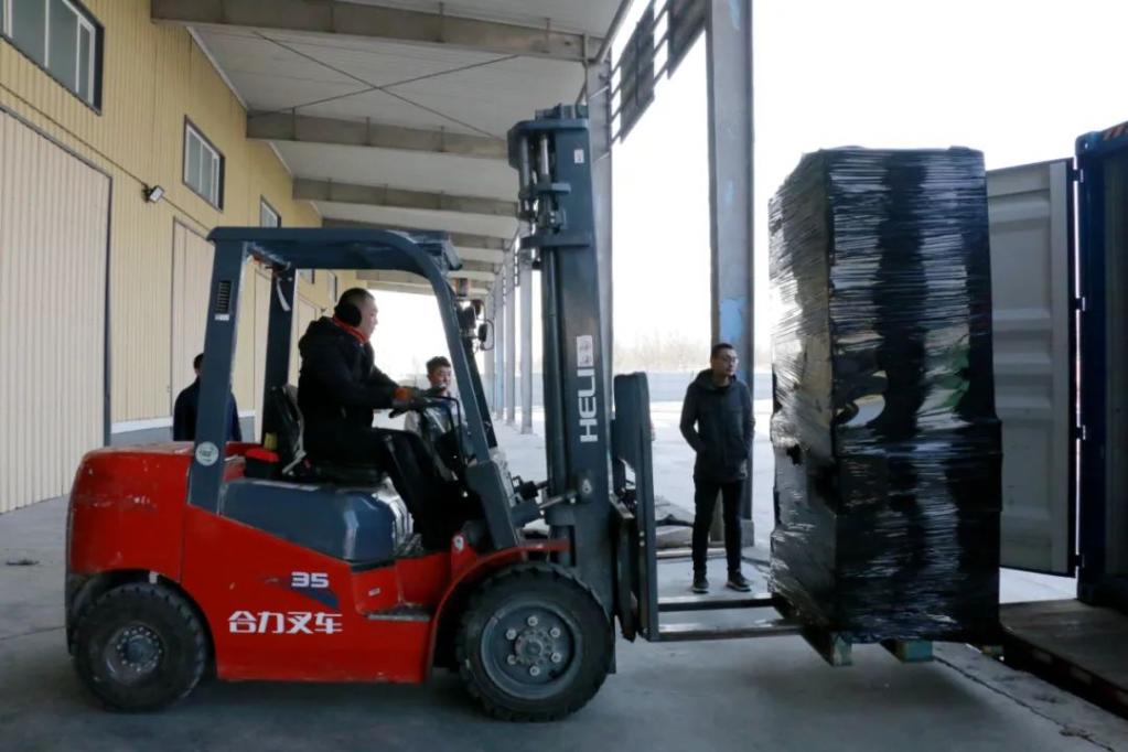 阿拉山口综合保税区工作人员从集装箱中卸下货品。受访者供图