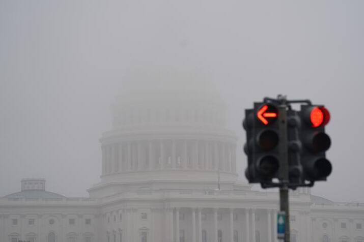 雾中的美国国会大厦。新华社记者 刘杰 摄