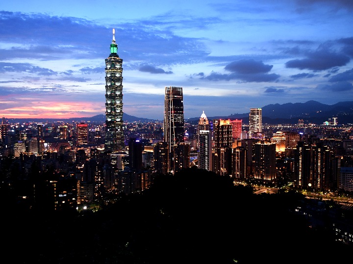 在台北市象山拍摄的台北市市区夜景。新华社记者 朱祥 摄