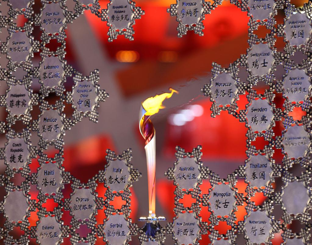 ↑2022年2月4日晚,北京冬奥会开幕式在国家体育场举行。这是位于国家体育场外的北京冬奥会火炬台。新华社记者程婷婷摄