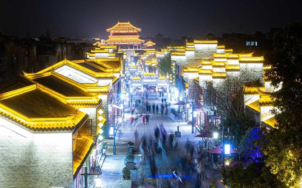 图为湖北襄阳关圣古镇夜景。(杨东 摄)