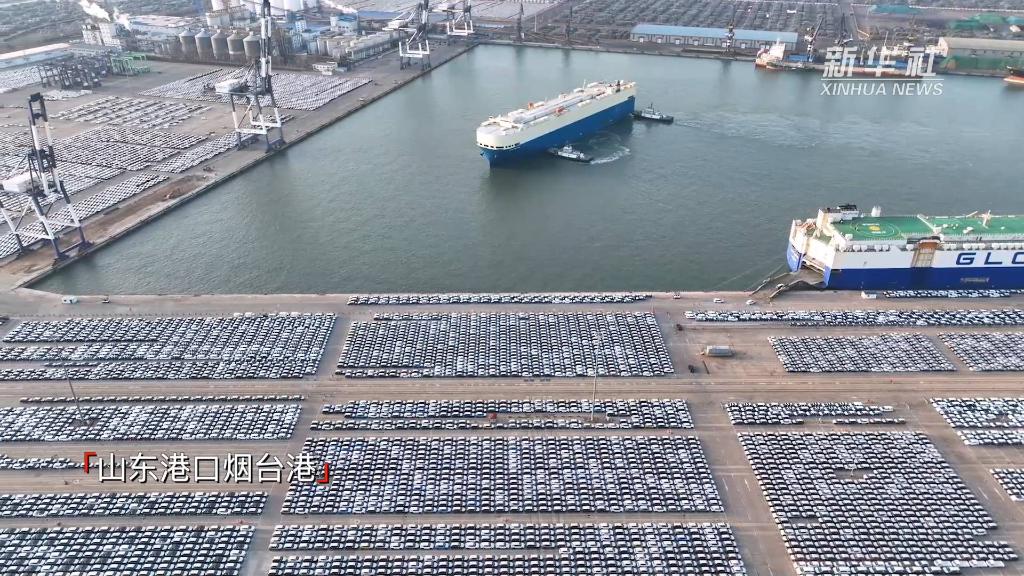 近日,山东港口烟台港商品车码头小汽车整整齐齐,等待上船。
