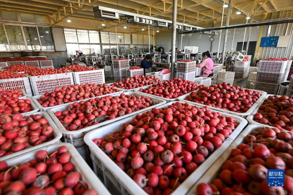 4月6日,在天津市蓟州区下营镇野森家庭农场,工人对山楂进行初加工。