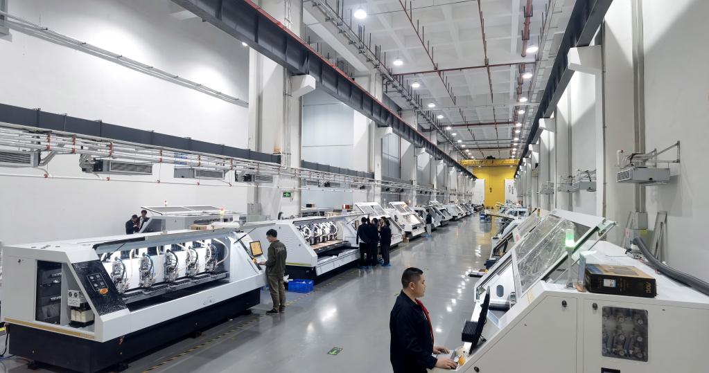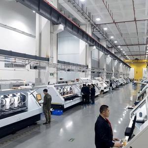 大族激光智造中心大楼里的数控激光钻孔设备制造车间。新华社记者周科 摄