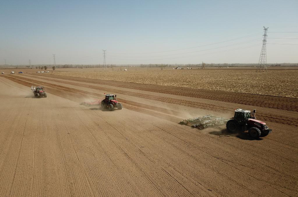 新疆是我国的农业大区,伊犁河谷气候湿润,水土光热资源得天独厚,被誉为“塞外江南”。察布查尔锡伯自治县农民罗俊杰正带领15人的种植团队,抢抓农时耕种。团队今年承包约8000亩高标准农田,主要种植玉米和小麦,有拖拉机、犁地机、整地机、播种机、农业无人机共13台设备。
