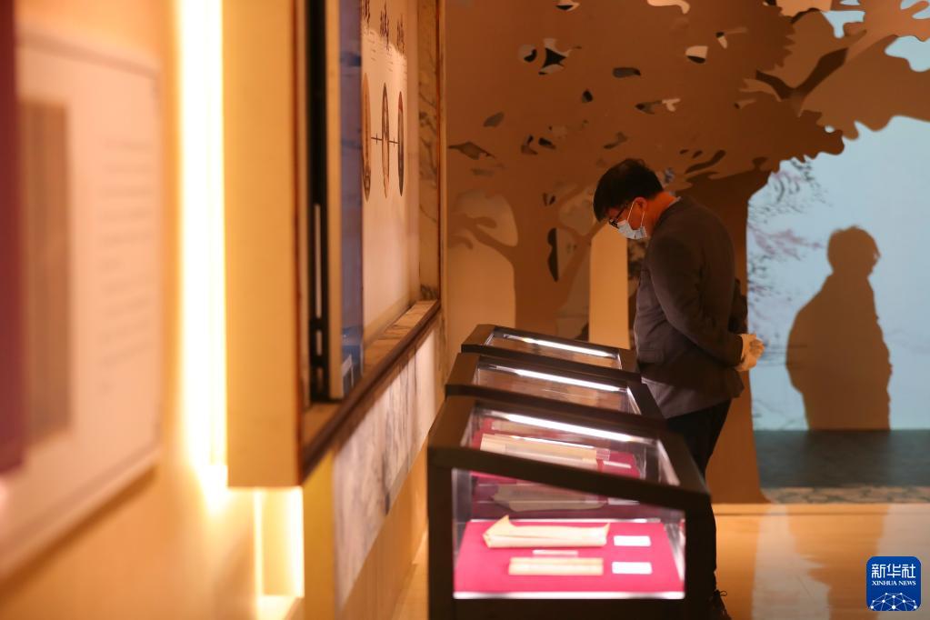 4月8日,观众在“继往开来 国韵书香——古籍保护与传承特展”中观赏古籍。