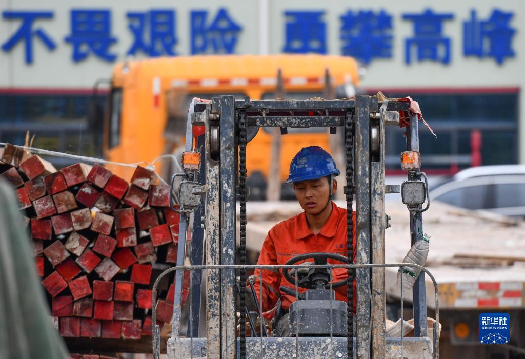 4月8日,施工人员在广州地铁10号线滨江东路站清理工地。