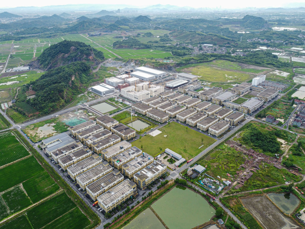 这是2022年7月22日拍摄的浙江德清县洛舍镇东衡村钢琴众创园(无人机照片)。新华社记者 江汉 摄