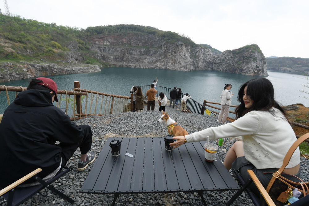2023年4月7日,游客在浙江省湖州市安吉县梅溪镇红庙村一咖啡馆休闲。新华社记者 翁忻旸 摄