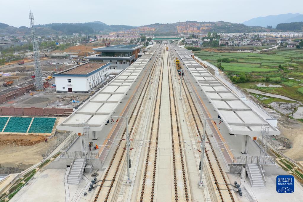 4月9日,独山东站在紧张施工当中(无人机照片)。
