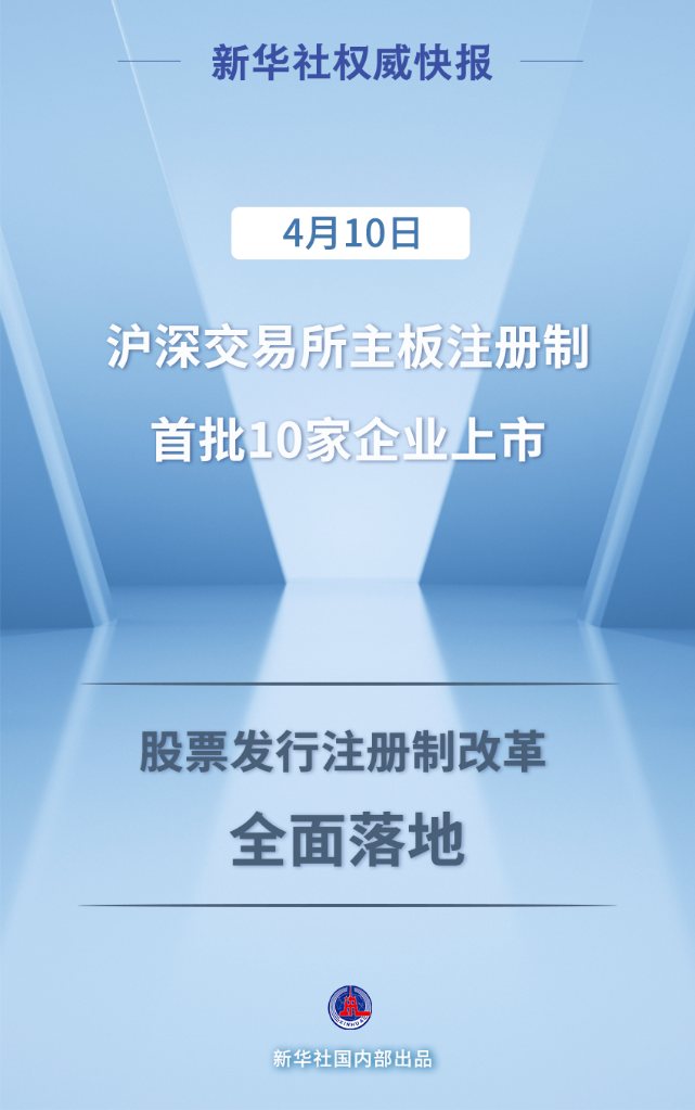 4月10日,沪深交易所主板注册制首批10家企业上市。