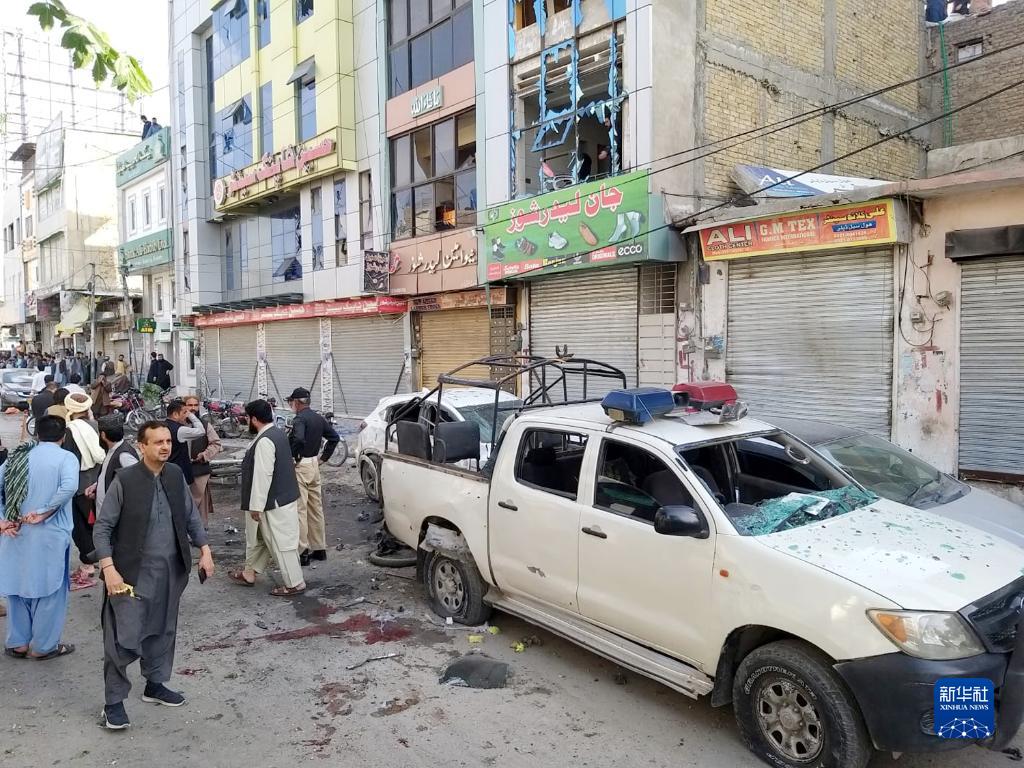 这是4月10日在巴基斯坦西南部俾路支省首府奎达拍摄的爆炸现场。新华社发