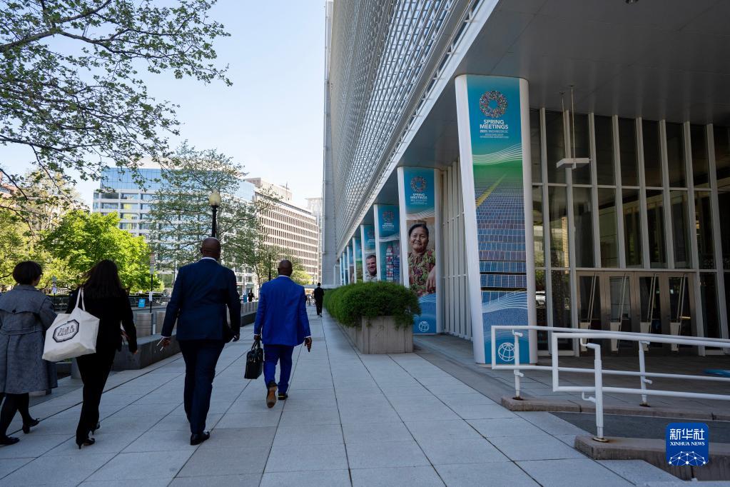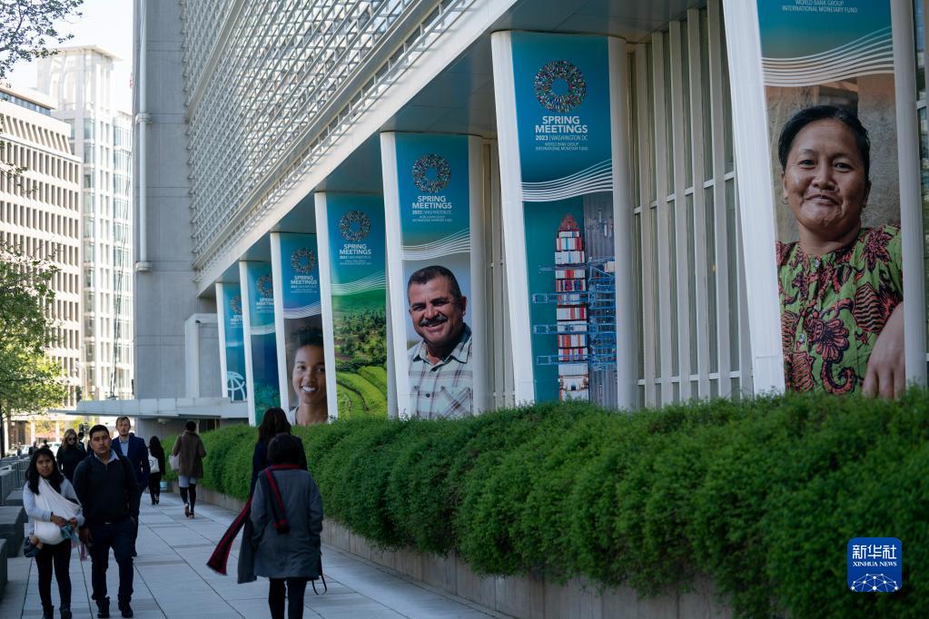 4月10日,在美国首都华盛顿,行人从世界银行大楼前走过。新华社记者 刘杰 摄