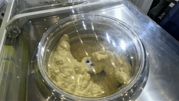 4月10日,意式冰淇淋展台的手工冰淇淋机正在制作开心果味意式冰淇淋 新华社记者 袁睿 摄