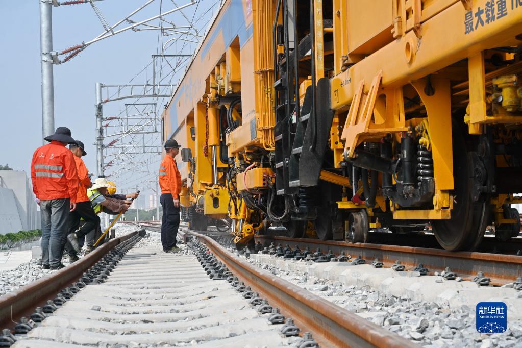 当日,在福厦高铁莆田站新建站场,作业人员与大型养路机械共同配合,对最后900米有砟轨道精细调整结束,标志着福厦高铁全线轨道精调顺利完成,为下一步全线联调联试工作打下坚实基础。