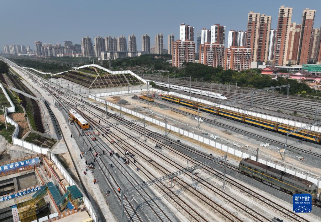 当日,在福厦高铁莆田站新建站场,作业人员与大型养路机械共同配合,对最后900米有砟轨道精细调整结束,标志着福厦高铁全线轨道精调顺利完成,为下一步全线联调联试工作打下坚实基础。