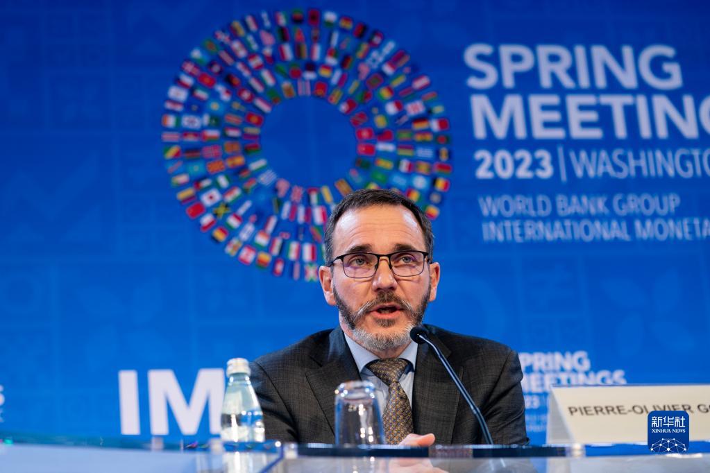 4月11日,在美国华盛顿,国际货币基金组织(IMF)经济顾问兼研究部主任皮埃尔-奥利维耶·古兰沙出席新闻发布会。新华社记者 刘杰 摄