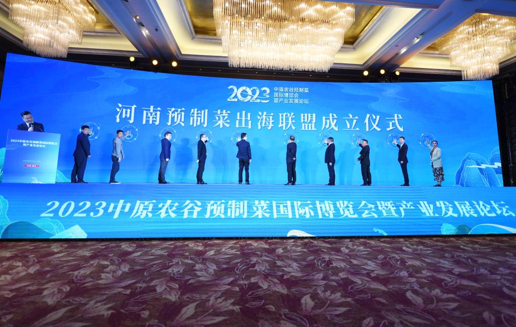 这是4月10日在2023中原农谷预制菜国际博览会暨产业发展论坛上举办的河南预制菜出海联盟成立仪式。新华社记者张浩然 摄