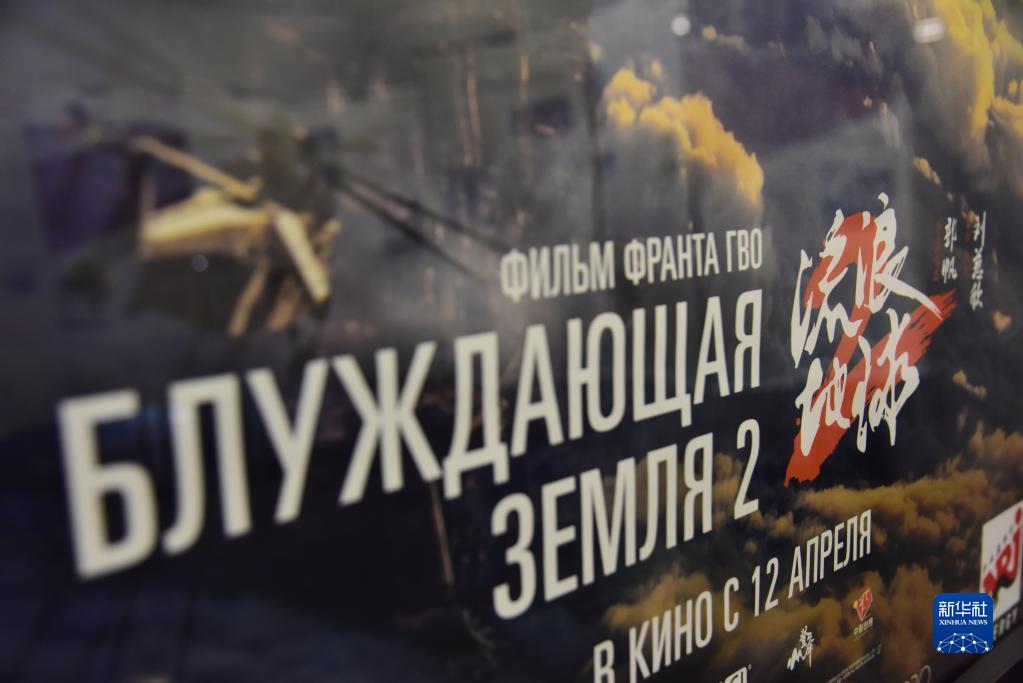 这是4月11日在俄罗斯首都莫斯科“莫斯科电影”旗下的宇宙电影院外拍摄的《流浪地球2》电影宣传海报。中国科幻电影《流浪地球2》俄文版首映式11日晚在俄罗斯连锁影院“莫斯科电影”旗下的宇宙电影院举行。俄政府官员、文化艺术界人士以及在俄中国留学生、华侨华人等参加首映式。新华社记者 华迪 摄