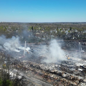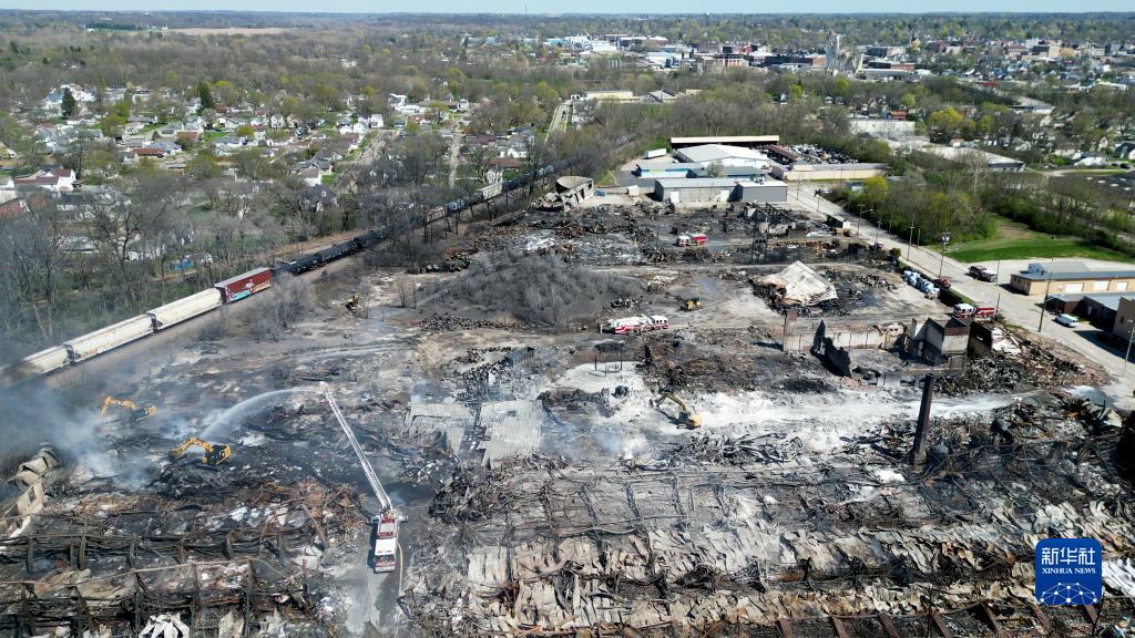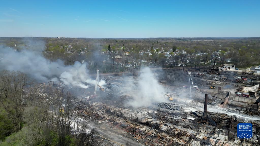 这是4月13日拍摄的美国印第安纳州发生火灾的回收厂(无人机拍摄)。新华社发(石磊 摄)