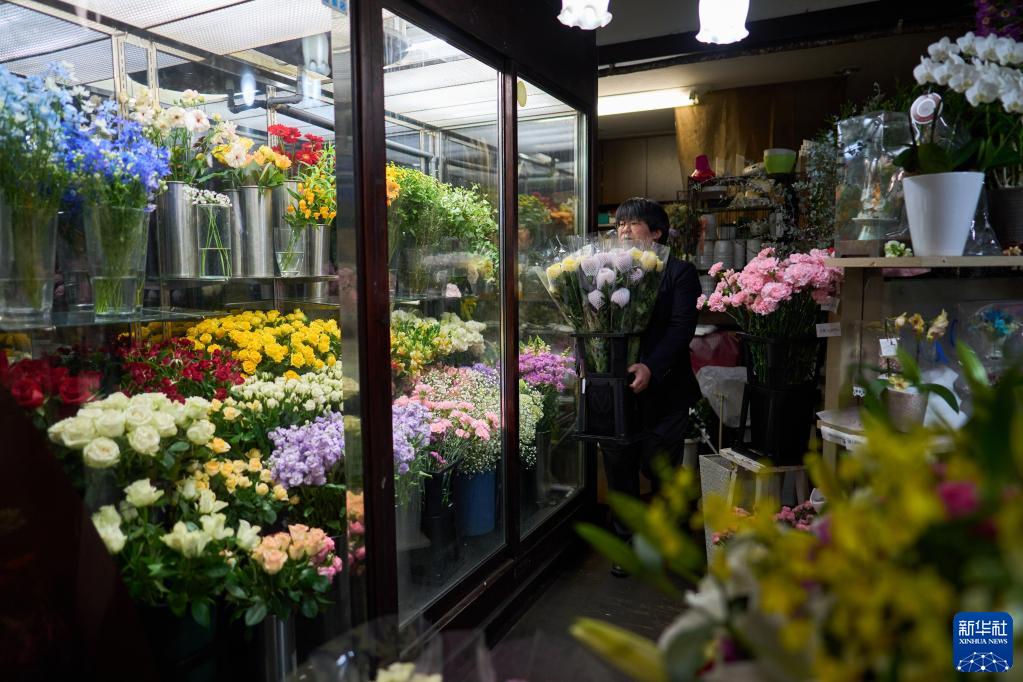 在日本千叶县千叶市,小西武将从中国云南进口的鲜花送到订货的花店(4月3日摄)。