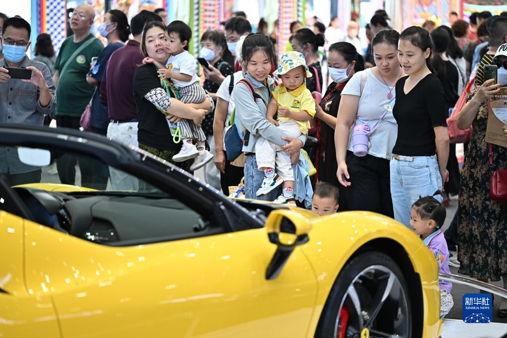 4月14日,观众在消博会上参观展车。