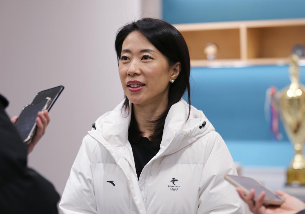4月12日,中国花样滑冰协会主席申雪接受媒体采访。新华社记者许雅楠摄