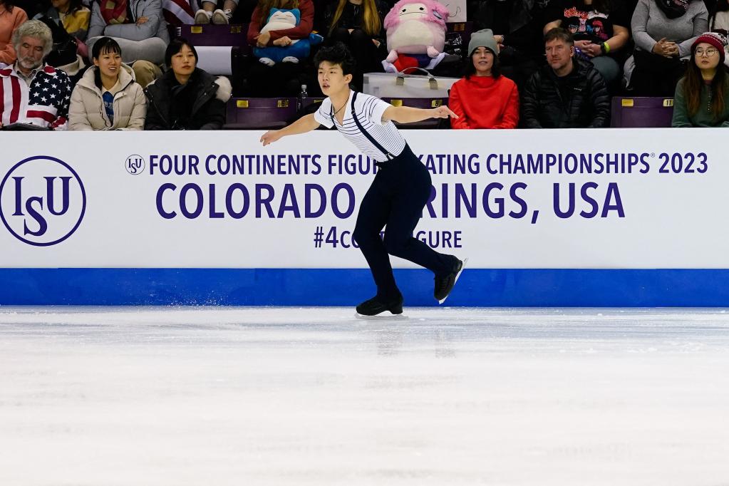 2月11日,中国选手陈昱东在2023四大洲花样滑冰锦标赛男单自由滑比赛中。