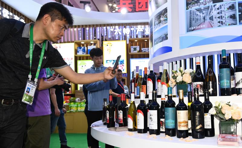 4月11日,观众在拍摄产自宁夏的葡萄酒。新华社记者 杨冠宇 摄