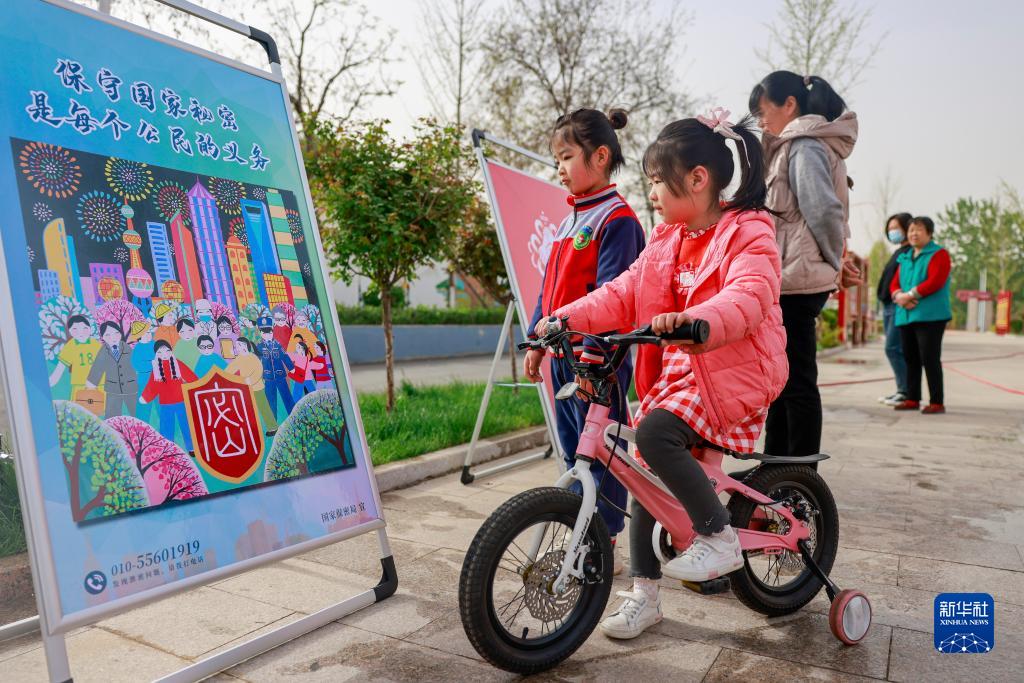 4月15日,在河北省唐山市丰南区岔河镇小稻地村,小朋友和家长在观看国家安全教育日主题展览。新华社发(李秀清 摄)