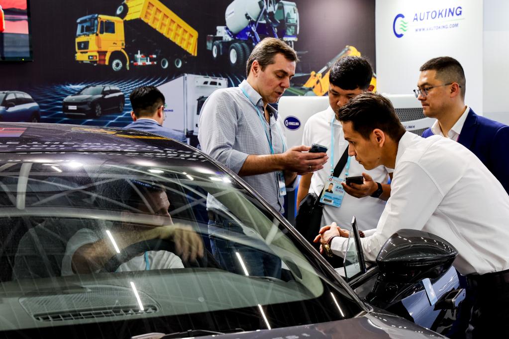 4月15日,采购商在广交会新设置的新能源及智能网联汽车展区了解中国新能源汽车产品。新华社记者 刘大伟 摄