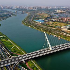 太原市汾河两岸景色(无人机照片) 新华社记者曹阳 摄