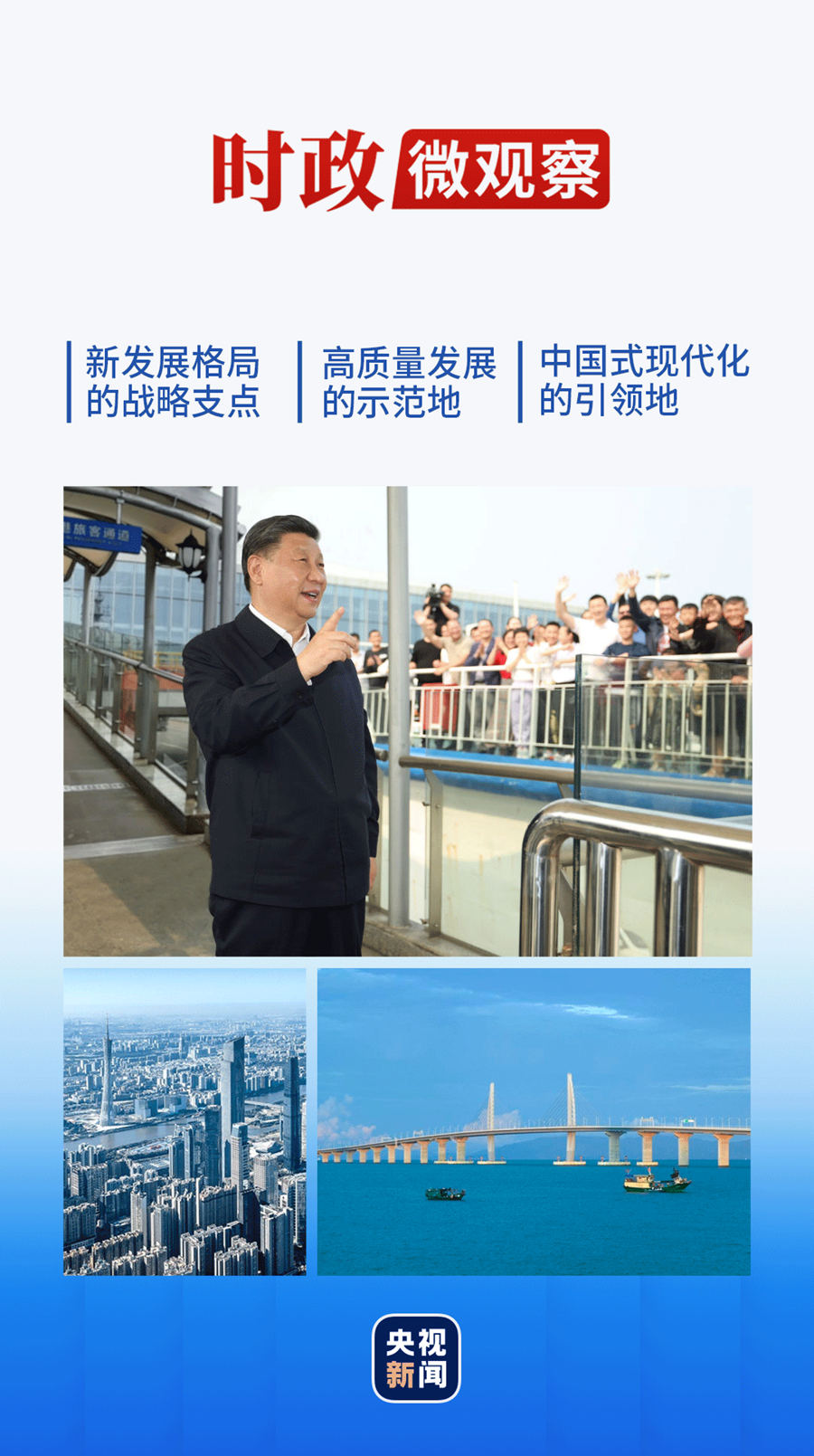 这次广东考察,习近平总书记在湛江徐闻港强调,要把港口打造成连接粤港澳大湾区和海南自由贸易港的现代化水陆交通运输综合枢纽。在乐金显示广州制造基地,总书记向外国投资者发出邀请:到中国来,到广东来,到粤港澳大湾区来,深耕中国市场,创造企业发展新辉煌。