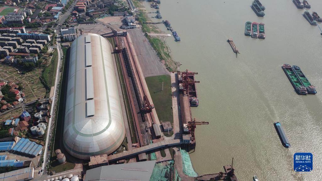 近期,位于洞庭湖与长江交汇处的湖南岳阳城陵矶港货船穿梭,一派繁忙。该港是长江中游的重要物资集散地。城陵矶港环保提质改造项目主体工程——全封闭“胶囊”形散货大棚2020年投入使用后,有效解决城陵矶港的货场粉尘污染问题,为地方经济绿色发展发挥重要作用,有利于保护长江生态环境。