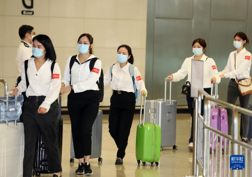 4月17日,在香港高铁西九龙站,医护人员抵港。新华社记者 李钢 摄