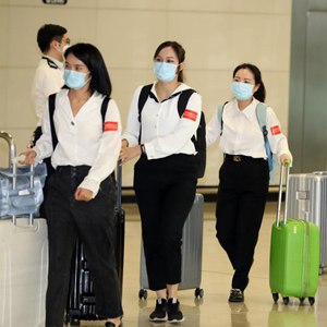 新华社香港4月17日电(记者孔维一)参与“大湾区医疗人才交流计划”的广东省医护人员17日中午抵港,香港医院管理局主席范鸿龄及行政总裁高拔陞前往高铁西九龙站迎接。
