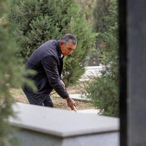 每天天不亮,艾尼瓦尔就来到陵园,扫地、浇水、锄草、擦拭墓碑,给前来参观的人们讲烈士的故事,或者帮助来祭奠的人们找到亲人的墓碑。