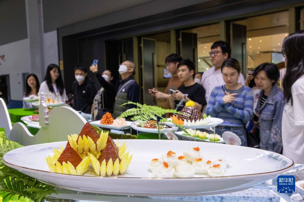 4月20日,参观者在“味美浙江”餐饮消费欢乐季现场参观浙江特色菜肴。