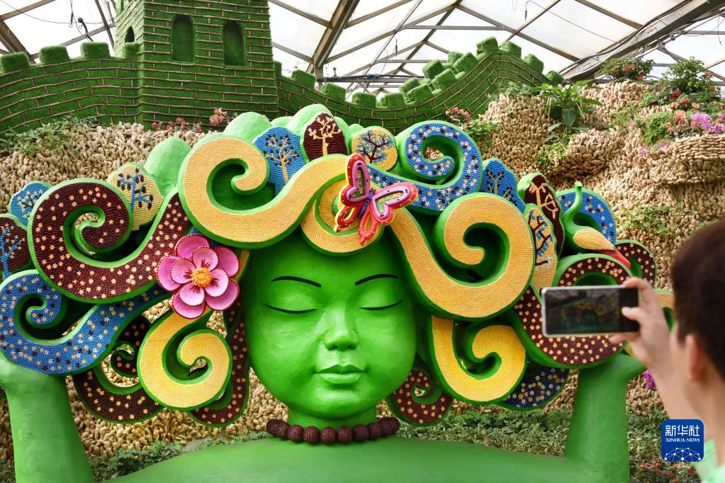 4月20日,参观者在菜博会蔬菜文化景观展区拍摄。