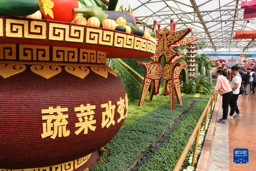 4月20日,参观者在菜博会蔬菜文化景观展区参观。