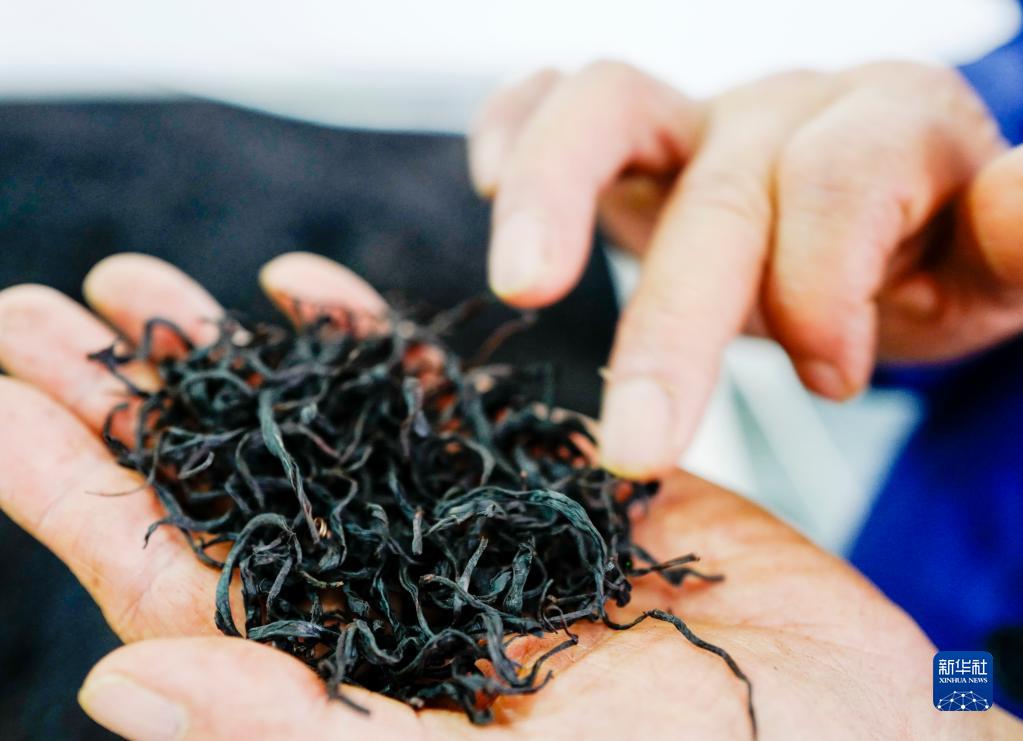 4月18日,重庆市南川区德隆镇千年金山红古树茶的生产车间内,一名工人在对制作好的成品茶进行人工品质初检。