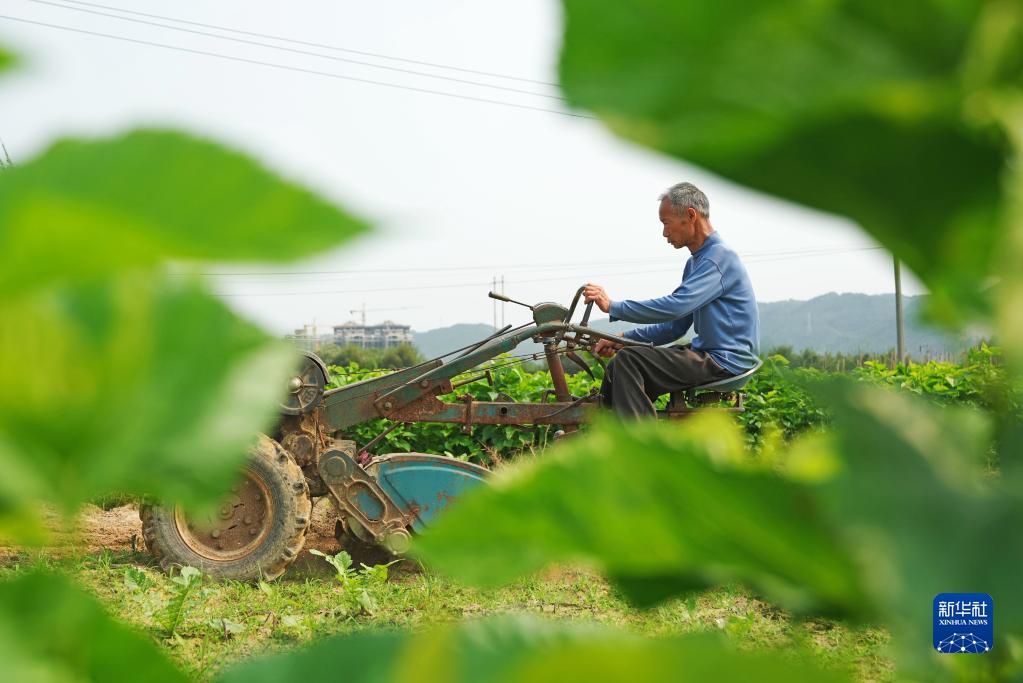 4月20日,在广西柳州市融水苗族自治县融水镇下廓村中麻屯,村民用手扶拖拉机耕地。