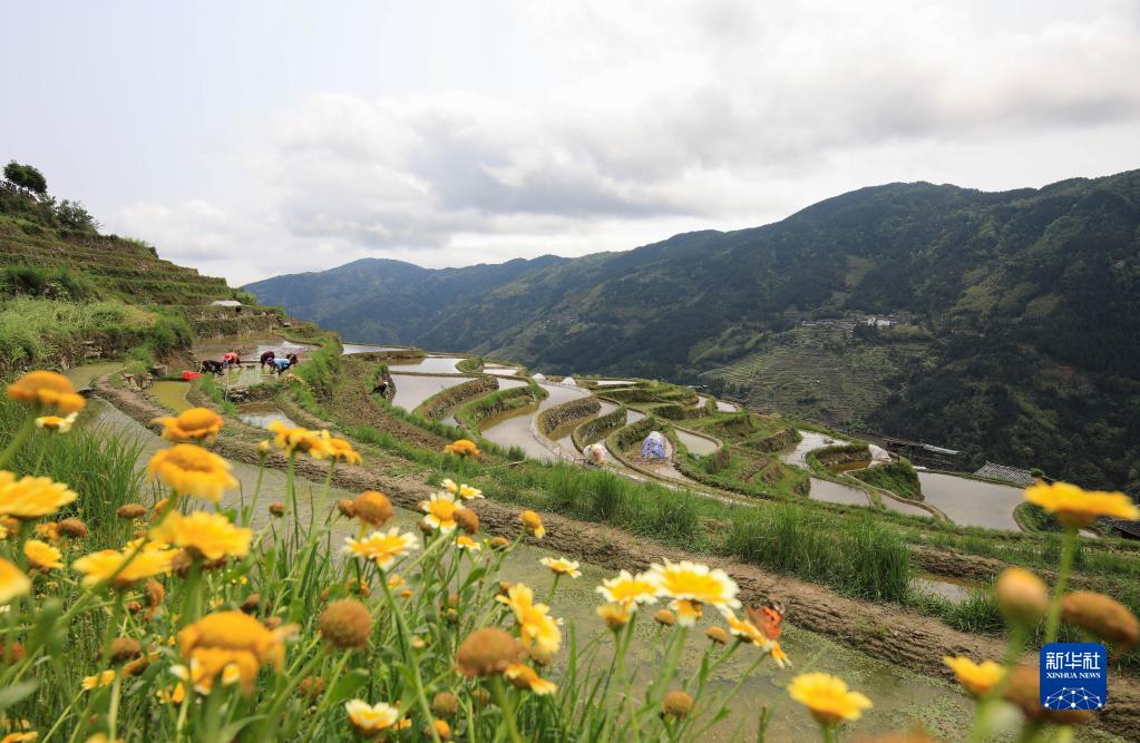 4月20日,村民在贵州省黔东南苗族侗族自治州从江县加榜乡加车村梯田里劳作。