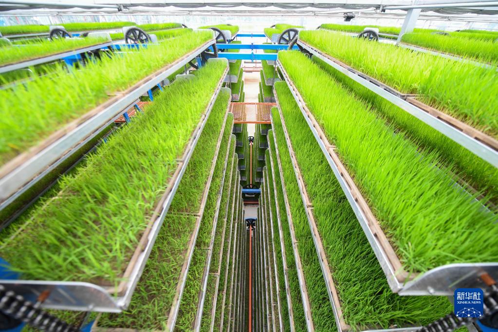 位于成都平原的四川省眉山市彭山区,近年来加快建设数智水稻示范基地,通过引进或定制循环式智能育秧机、智能水稻育秧播种流水线、秧盘智能传输带等设备,提升春耕科技含量,提高生产效率。