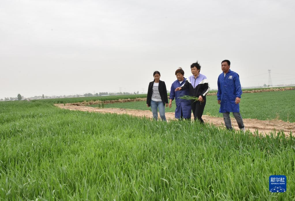 4月20日,邢台市南和区农技人员在田间对张战强夫妇进行麦管技术指导。