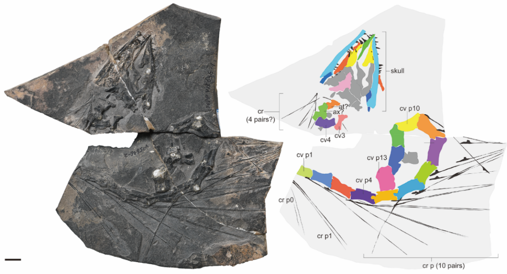 近日,中国科学院古脊椎动物与古人类研究所科研人员从化石标本中识别出一个区别于长颈龙、恐头龙的三叠纪主龙型类新属种。因其具有细长的颈部,又曾被误以为是恐头龙的幼年个体,于是被命名为“隐秘细颈龙”。相关成果近期发表于国际期刊《解剖学记录》。